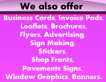 Other signs available include swing signs, A-Boards Snap Frames, Forecourt Signs, Chalk Boards etc.